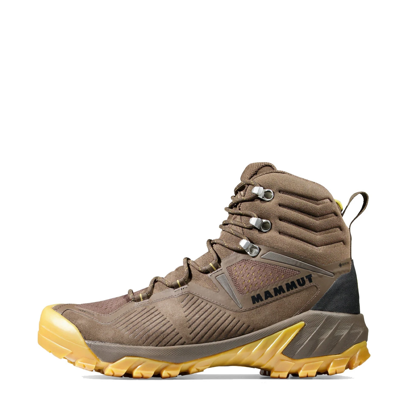 The Mammut Sapuen High GTX is the right choice on all kinds of terrain. Mammut Flextron Technology™ supports the natural rolling movement of the foot, while Mammut Georganic 3D Technology® guarantees maximum comfort. All components in contact with the foot are anatomically shaped with great precision while the classic tongue construction offers easy entry. Optimized for hiking: a Vibram® rubber blend for secure grip on outdoor surfaces and a sole design that supports self-cleaning. The waterproof Gore-Tex® membrane guarantees dry feet.