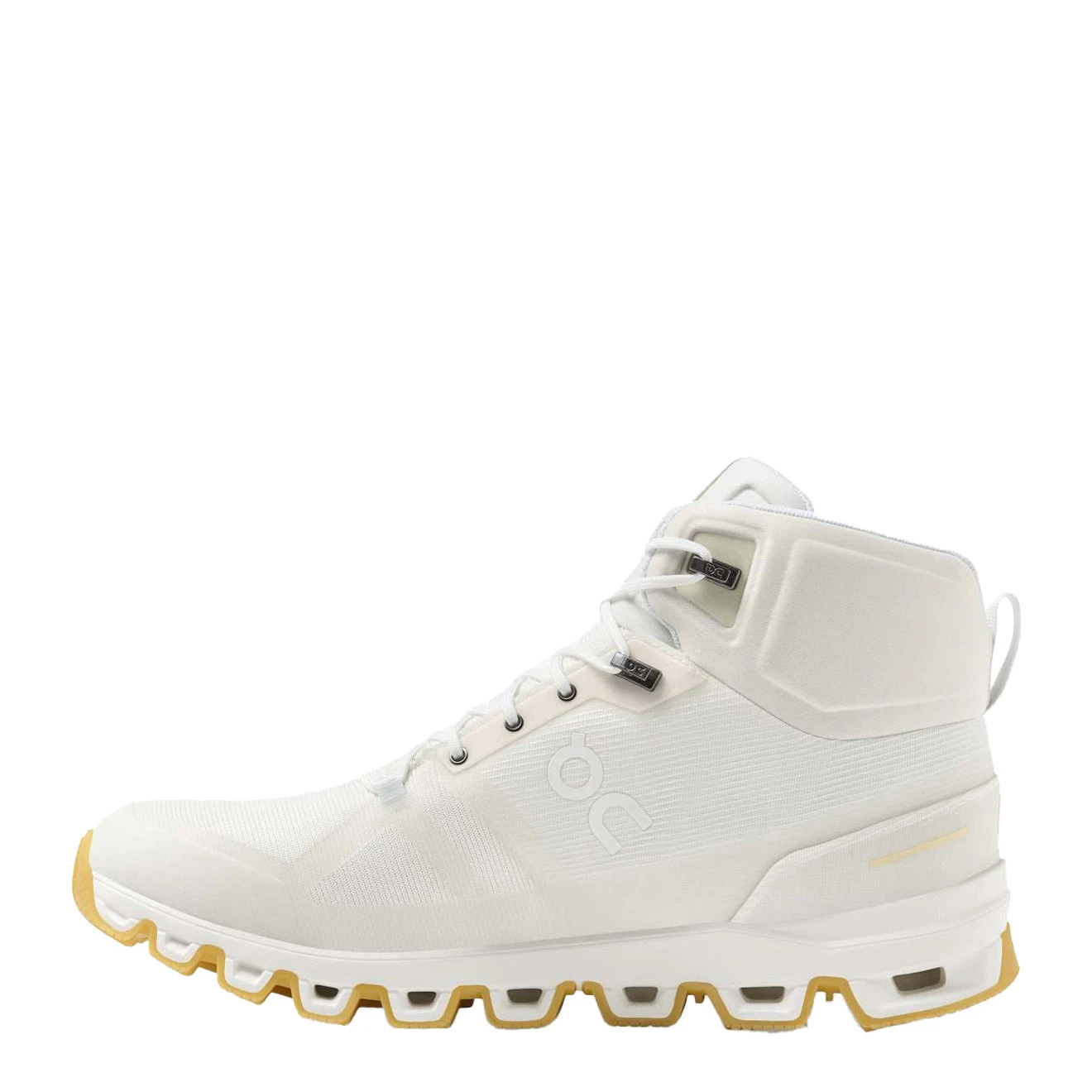 The On Running Cloudrock Edge Raw Trainer is dye- and bleach-free and features more than 80% recycled materials. Featuring Missiongrip™ soles that add traction and lugs bite into soft trails. The durable membrane is wind and waterproof, the high collar is made for movement and, like the tongue, is reinforced with padding.